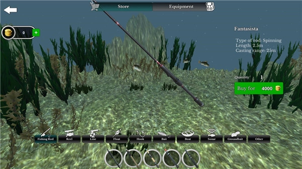 游戏商城里还可以更换各种鱼竿配件和鱼饵,