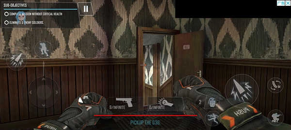 通过游戏里的虚拟操纵杆进行操控与移动,同时在各个不同区域探寻更多敌人。
