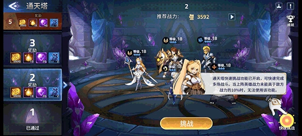 当我们的实力明显超过当前关卡的要求时,就可以借助快速挑战功能跳过那些战力差距悬殊的关卡;不过,要是我们派出的阵容战力未能比敌方高出10%,那么快速挑战功能就无法启用。