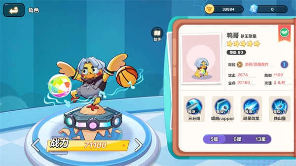 释放一场三分雨,投射出大量篮球,在抛物线覆盖的攻击范围内,每个篮球会对随机敌人造成40%的伤害;篮球命中目标后,还有概率触发一次反弹效果。