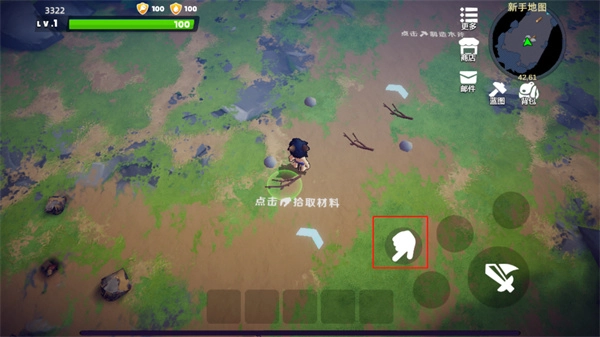 进入游戏后,玩家可操控角色收集材料,靠近材料时点击图中所示的红色选项就能完成收取。
