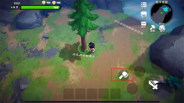 制作完成的工具能够用于收集材料,就像下面这张图里展示的,我做了一把斧头,它可以用来砍伐树木。