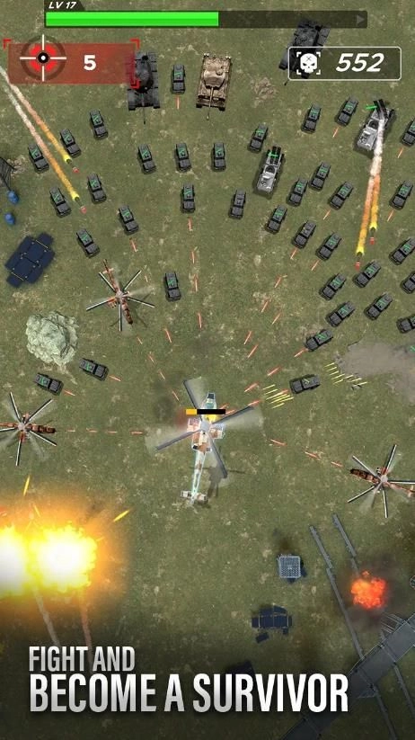 《直升机幸存者》是一款紧张刺激的飞行生存游戏,能让你尽享无限乐趣。游戏巧妙融合了逼真的驾驶操作、丰富的开放世界探索以及扣人心弦的剧情,高清写实的游戏场景能为每位玩家带来沉浸式的战争挑战体验。炫酷的特效搭配身临其境的感受,可助你尽情释放强大火力。驾驶员需操控直升机与敌方战机展开对抗,更有超刺激的射击玩法等你体验。玩家能随时随地与敌人进行激烈空战,沉浸在热血沸腾的空战世界里。