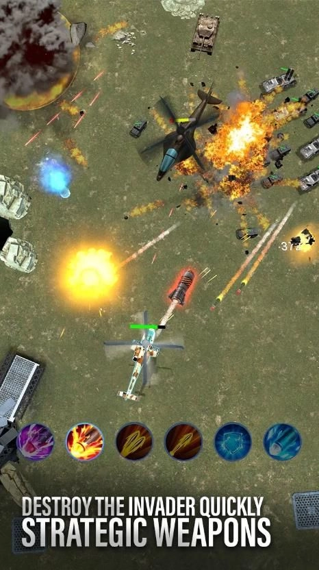 刺激生存进程:无尽的冲突已然开启,使玩家感受驾驶直升机的惊险与生存的紧迫,在游戏过程中积攒能量。