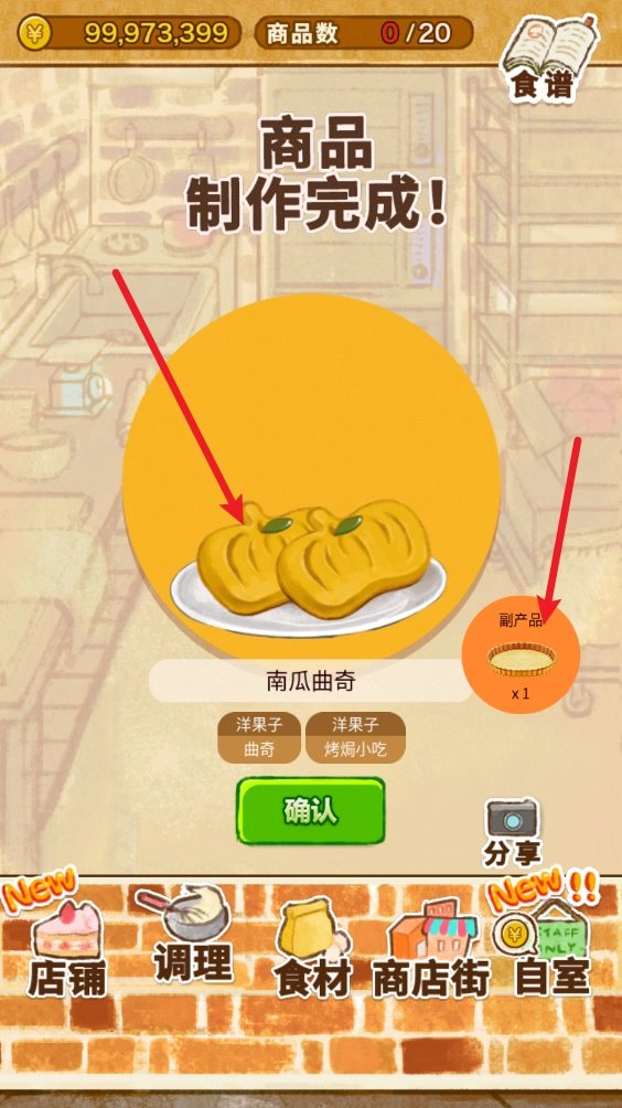 1、塔皮是制作南瓜曲奇时产生的副产品,第一步我们需要在调理界面准备制作南瓜曲奇。