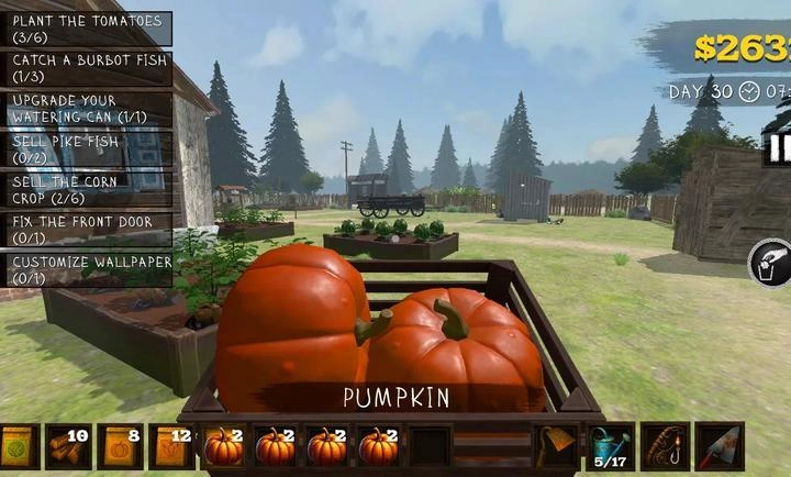 2、在农场里要处理南瓜头怪物袭击、灵体出没这类恐怖事件。得借助农场里的资源打造斧头、火把之类的武器,或是搭建围栏、陷阱这样的防御工事,以此抵挡敌人的进攻。