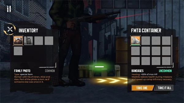 5、当遇到可互动的物品时,能够对其进行搜索,并且可以选择带走部分物品,也可以选择带走全部物品。