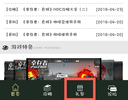第二种操作方式:点击菜单栏中的“幸存联盟>游戏”选项,进入对应页面后,找到并点击“游戏礼包”即可获取兑换码。