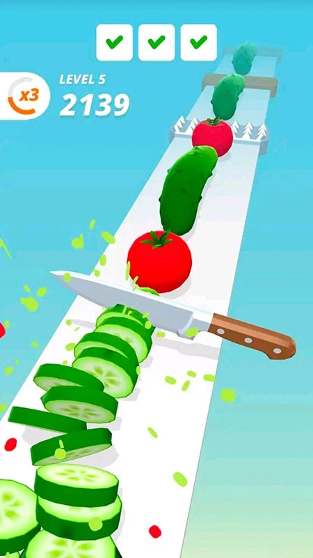 玩家的目标是尽力切除水果,获取更高分数,从而解锁各类休闲玩法。