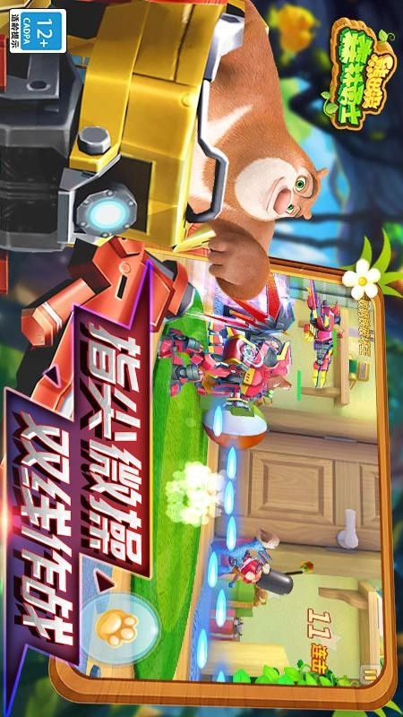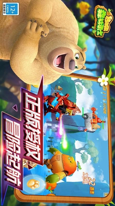 1、以动漫《熊出没》为背景,熊大熊二身着超酷炫的重装机甲,玩家将肩负守卫森林和平的使命,与邪恶势力展开智勇较量,进行全方位的陆空对战,深度体验更刺激的机甲对决,精彩内容层出不穷。