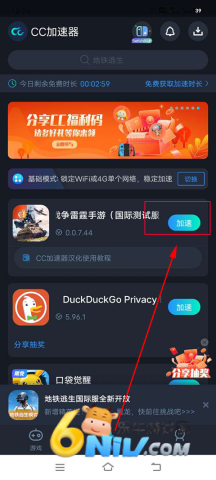 1、下载安装战争雷霆国际服手机版后,先打开游戏加速器(推荐使用cc加速器),在加速器内找到“战争雷霆”这款游戏,点击加速并启动游戏就可以了。