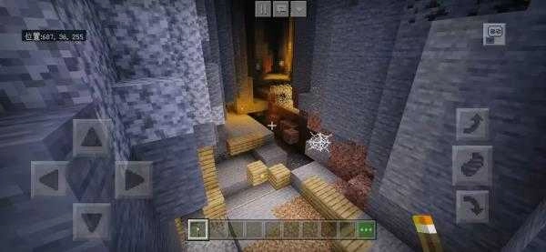 这个地图的出生点周边有一个垂直矿洞,非常适合生存模式下用来挖矿,矿洞内部岔路不少,大家一定要记好路线(图片左上角标注了坐标)远看的矿洞