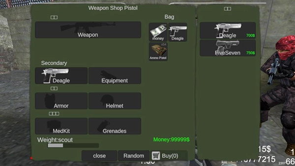 3、点击背包可以购买枪支