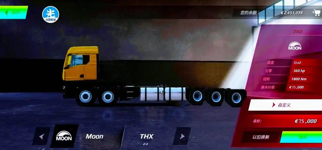 2、到达城区后,可以选择更换轮胎或加油;要是你资金充裕,还能为自己的卡车升级配件。