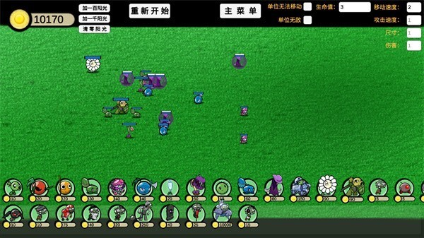 1、在本站完成安装后点击打开进入游戏,选择主界面的沙盒模式,玩家即可自由布置各类植物与僵尸。游戏提供了数十种不同单位供玩家挑选。
