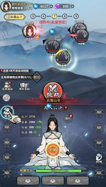 4、当你变得足够强大后,就能解锁更多角色,让他们加入你的修真队伍,你可以逐个培养这些角色,助你成为修真界的顶尖存在。