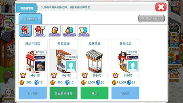 7、开设路边摊,可以定时的获取金币和经验奖励