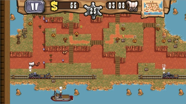 枪之荣耀中文版是HandyGames开发的一款塔防类休闲益智游戏。它以反派视角为切入点,让玩家感受化身为西部大盗的别样趣味。游戏运用2D画面技术,不管视角是拉远还是拉近,都能展现出精致的视觉效果。漫天黄沙的荒野、零星分布的仙人掌和飞驰而过的火车,这些元素一起构建出了浓厚的西部电影氛围!