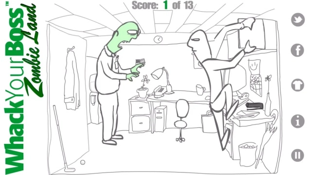 1、你的核心任务是点击场景里的各类日常物品,像订书机、键盘、咖啡杯、文件柜之类的,以此来“教训”你的僵尸老板。