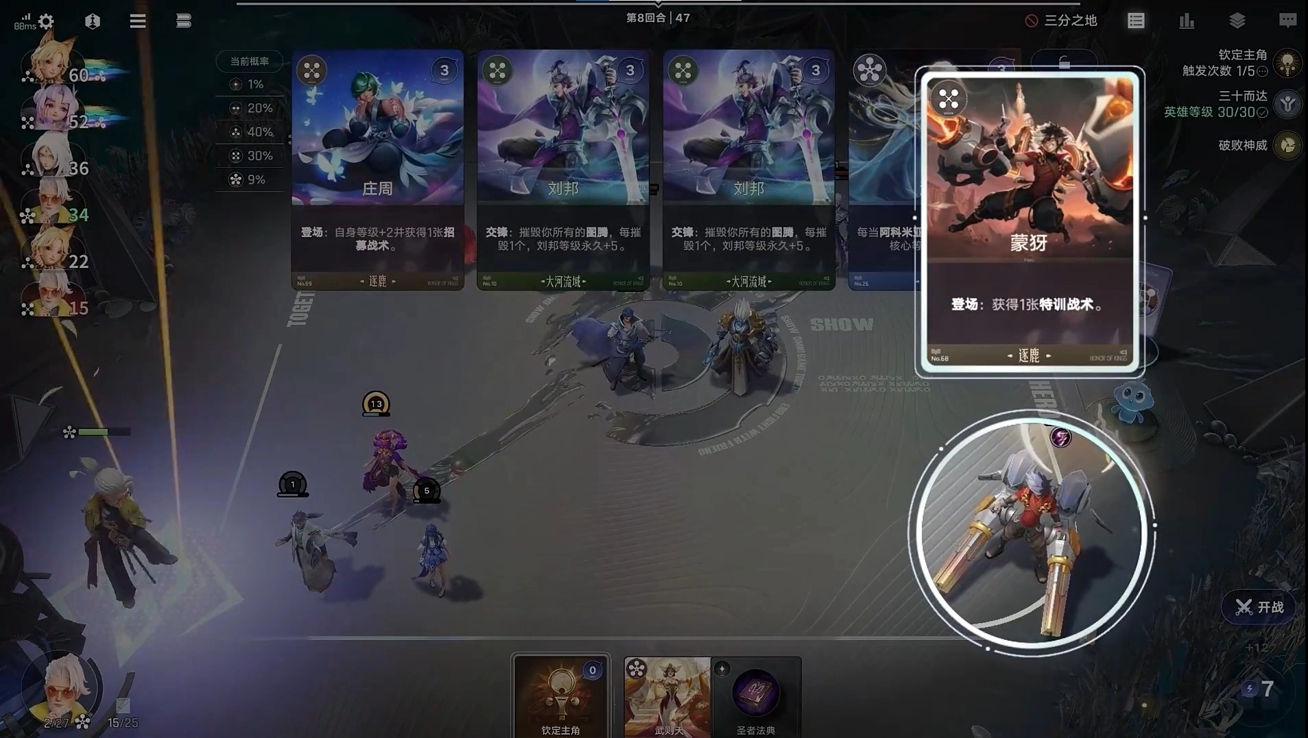 7、此阶段重点寻找蒙犽,并将主要输出装备集中给他,通过持续使用战术牌迅速拉高等级。