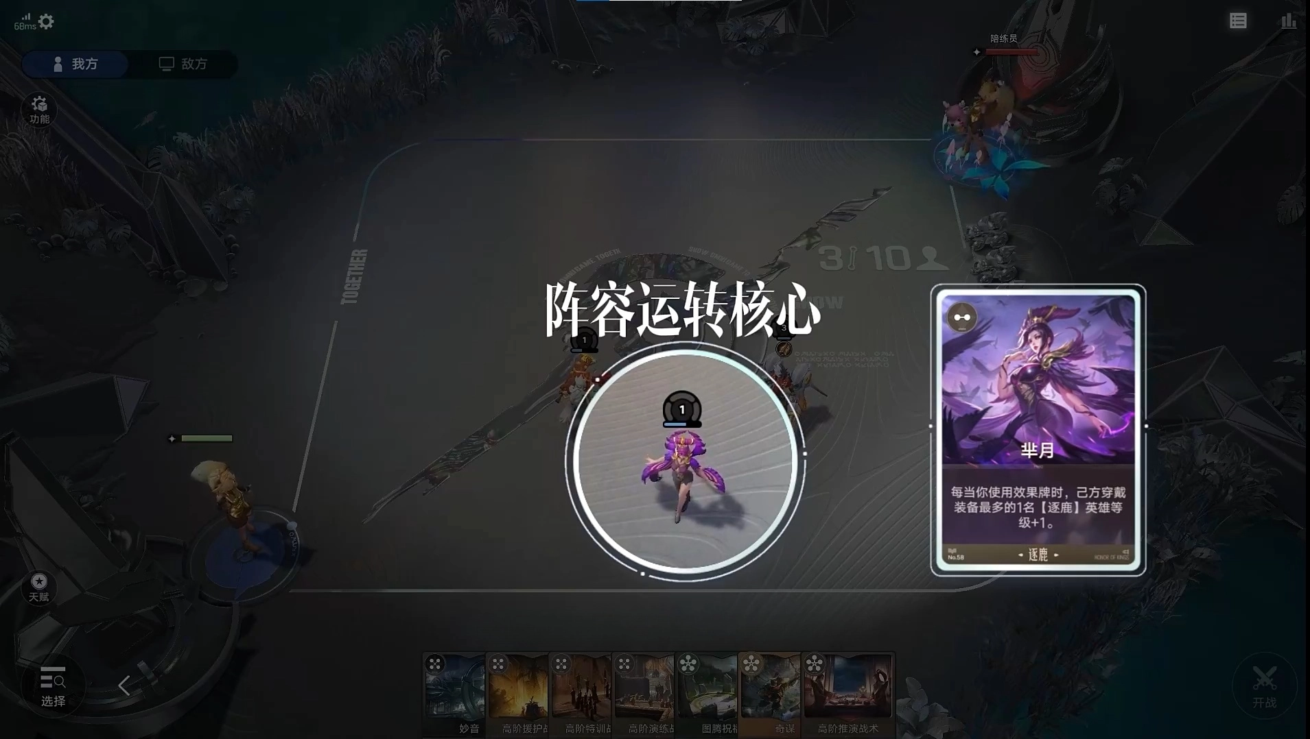 1、本套体系以芈月作为核心驱动单位,每当玩家打出任意效果或战术牌时,都会触发芈月的被动机制,为当前装备数量最多的英雄提供额外等级成长。