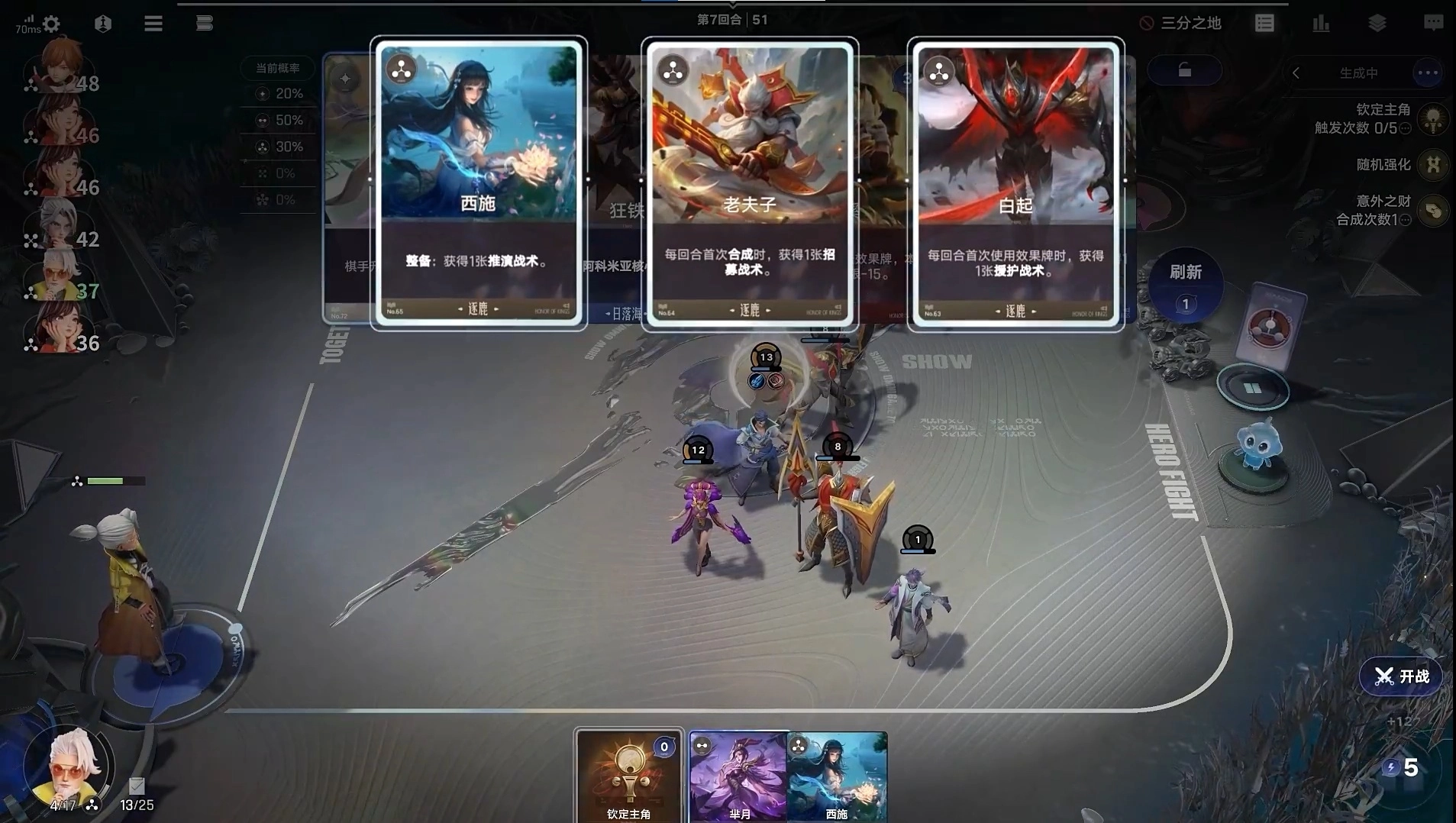 5、大概在第四回合升到3级,着手把西施、老夫子、白起这类核心辅助单位凑齐,为中期能发力打好基础。