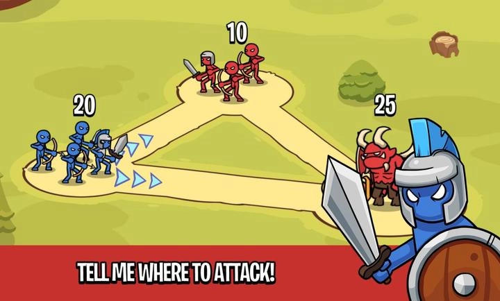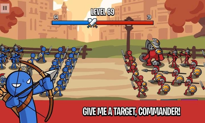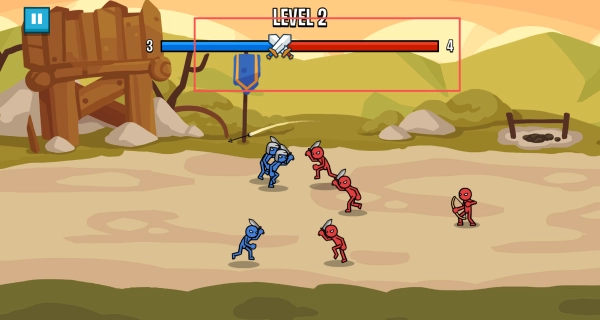 1、点击屏幕开启对战,操控火柴人军团与敌方军队交锋,快速进入紧张刺激的战场节奏。