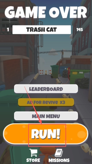 2. 准备启动:进入跑酷准备界面后,点击“Run!”按钮,即可查看排行榜信息以及商店内的相关内容。