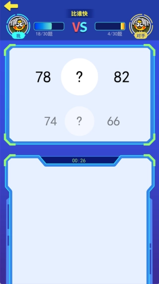 算数大比拼是一款非常有趣的闯关游戏,在游戏中玩家可以参与算数比赛,自由匹配对手展开对决,玩家要快速进行数字对比,在有限的时间内答对所有题目,完成比赛就能领取丰厚奖励,还能提升自己的排名,多种算数模式都能直接体验。