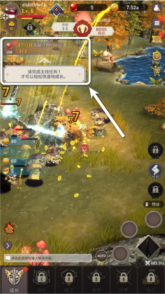 2、点击自动战斗按键以解锁,开启自动战斗功能。