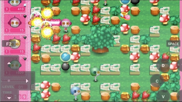 双人模式:玩家1通过WASD键控制移动,空格键投放炸弹;玩家2借助方向键操控移动,回车键释放炸弹。