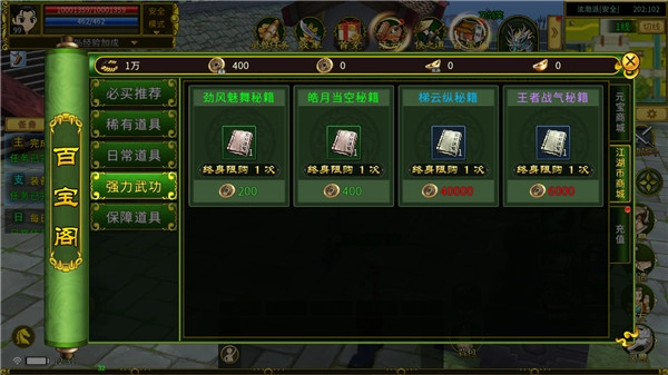 上面提到的这些武功秘籍,都能在【百宝阁】的江湖币商城里买到。只要把秘籍拿到手,感觉整个天下都能掌握在自己手中!不过要留意的是,学习新的武功还得满足一定的历练值要求,而击杀野外怪物就能获取不少历练值。
