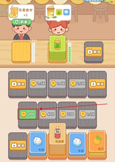 这款游戏的核心玩法围绕店铺运营展开,玩家需依据顾客的具体需求,挑选对应的奶茶配方卡片进行组合,当卡片数量达到十张时,就能完成一杯奶茶的制作流程。