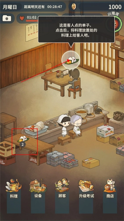 制作完成的料理会被放置在料理台上,只要点击客人所点的菜单,就能将料理端给客人了。
