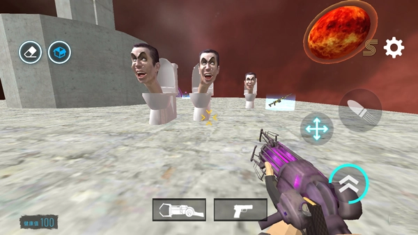 马桶人太空沙盒中文版是一款全新的太空沙盒星系射击游戏,其英文名为Sandbox In Space。游戏内收录了众多恐怖游戏里的怪物敌人,像马桶人、圆锯人、弹头人、寄生物、外星飞碟等都在其中。玩家能够借助控制枪进行放置操作,之后利用地图上的枪械展开射击,怪物便会发起攻击。左下角会展示角色的生命值,一旦生命值耗尽,游戏就宣告结束。