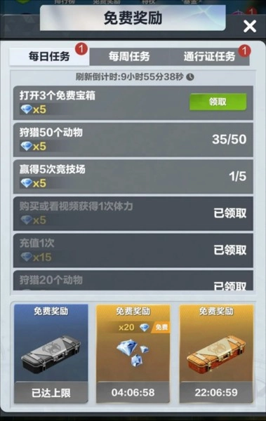 免费奖励(日常、周常、通行证日常任务)