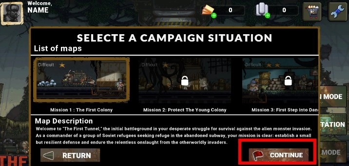 选择地图点击continue进入