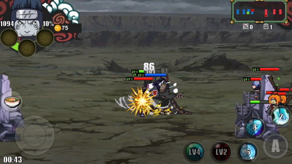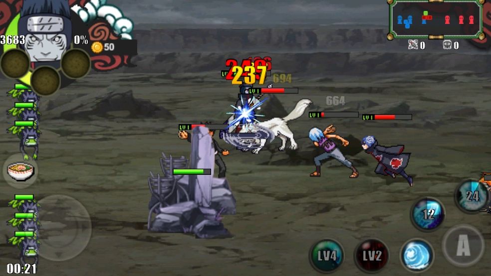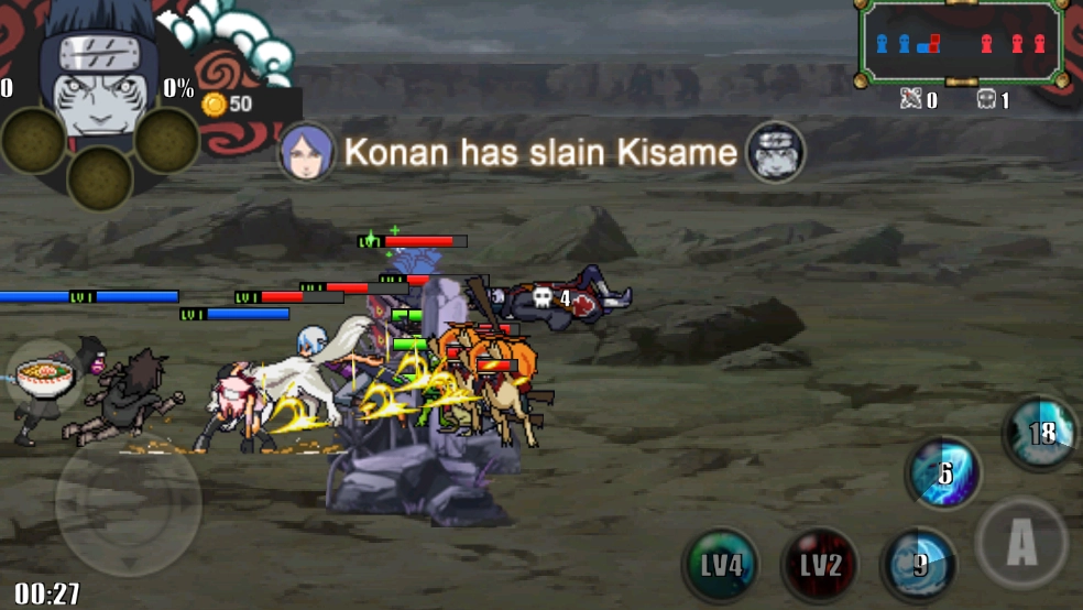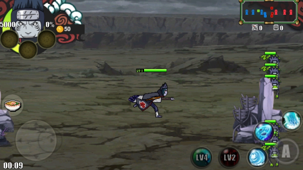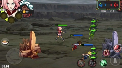 通过击败对手阵营的忍者角色,可以积累成长所需的点数来提升自身的阶段,进而实现生命值上限的增加以及攻击能力的强化。