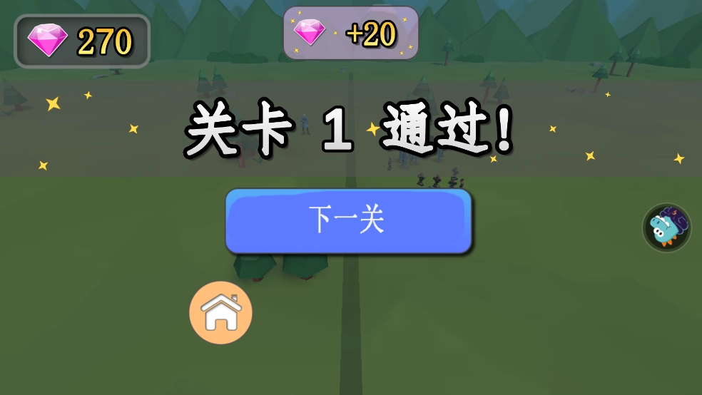 布置好阵型后,游戏即可开始。我方击败敌方后便能通关进入下一关卡,届时会有丰厚的钻石奖励可供领取。