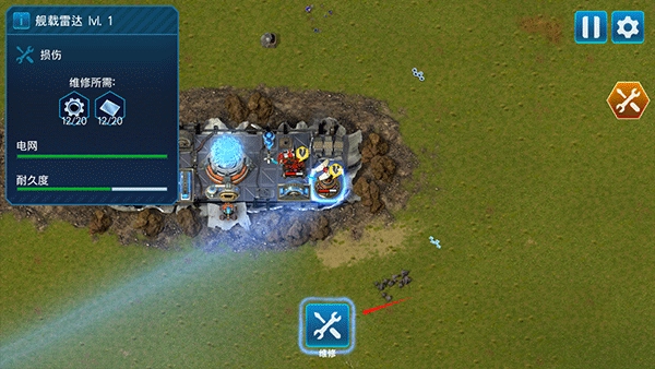 先点击雷达,再点击维修即可