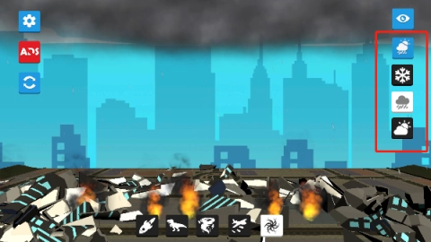 右侧可设置城市天气,支持选择雨天、雪天、晴天等不同天气条件,以此营造多样氛围,提升打击建筑时的趣味性。