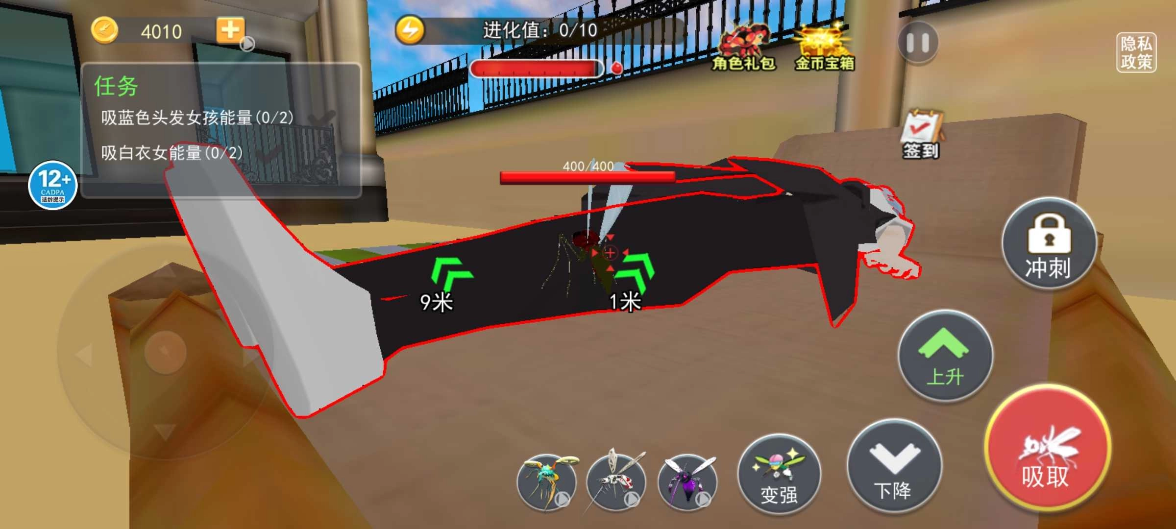 明明吸满一管血了血量却没涨,明明都叮进去了,翻个身就被甩掉……难道是把嘴卡在里面了?任务里“攻击”的定义太模糊,我随便叮一下是叮,吸满一管血也是叮,可这两种情况都没推进任务进度(什么啊?),小姐姐居然睁着眼睛睡觉,再加上后面泰迪熊那诡异的色调,差点把我吓个半死。