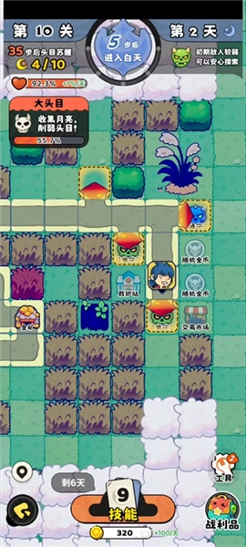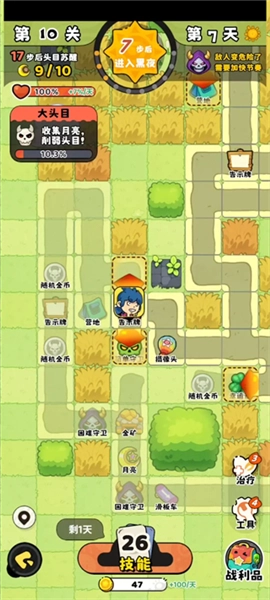 游戏在白昼时段可挑选3项技能以增强自身实力,而到了夜晚,就会遭遇更为强大的对手。