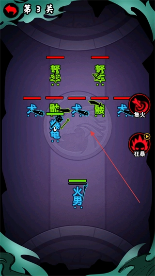 在关卡里比如第3关,先查看敌方阵容像弩车、犬、髅这类,以及己方阵容比如爆龟,弄清楚双方的布局情况。