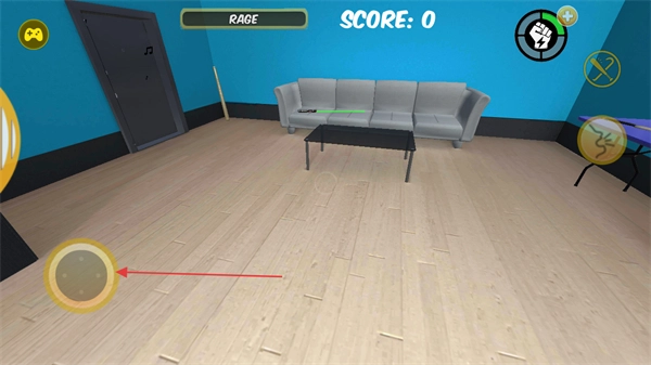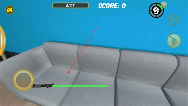 控制角色移动,在房间里搜寻武器,比如沙发上的光剑。