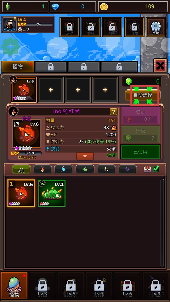 点击【自动选择】功能,对怪物队伍进行管理,优化战力配置方案,助力推进游戏进程。