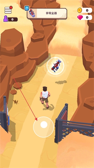 拾取吸尘器,进行目标区域的沙土清理任务。