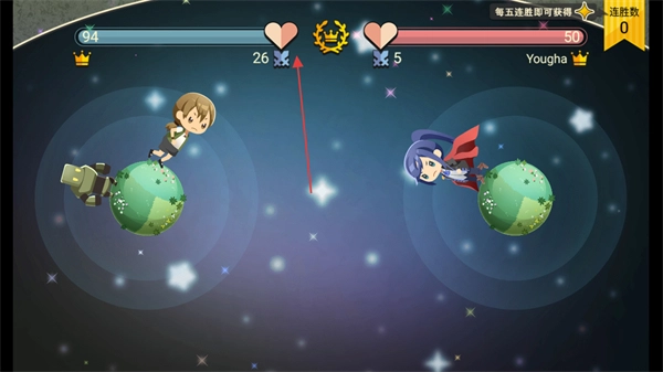 进入游戏后,留意屏幕上方显示的双方生命值红心标识、攻击值交叉剑标识等信息,比如我方数值为26,敌方数值为5。