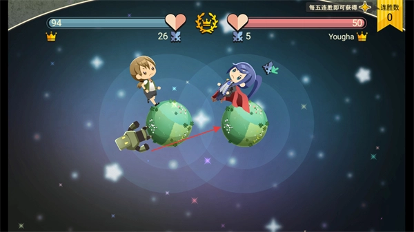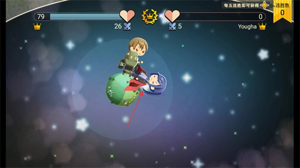 控制角色从当前所在的星球出发,朝着敌方星球的方向移动,同时留意时机,以便在合适的时候靠近敌方角色。