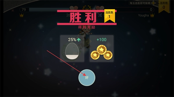 成功击败敌方角色后,待胜利提示出现,点击“好”按钮,即可领取包括100金币在内的奖励。